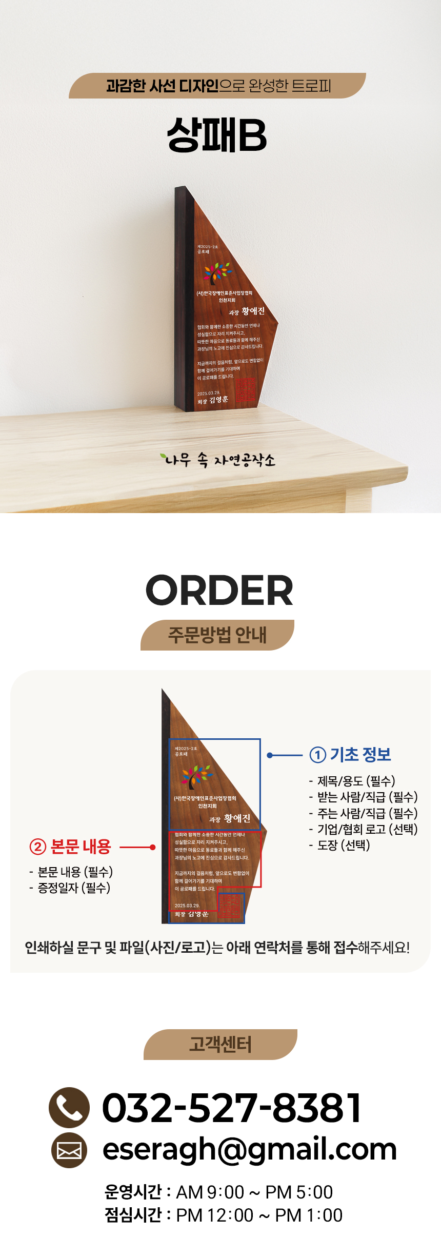 상패B 원목상패 우드 나무 트로피 기념패 공로패 주문제작 맞춤제작